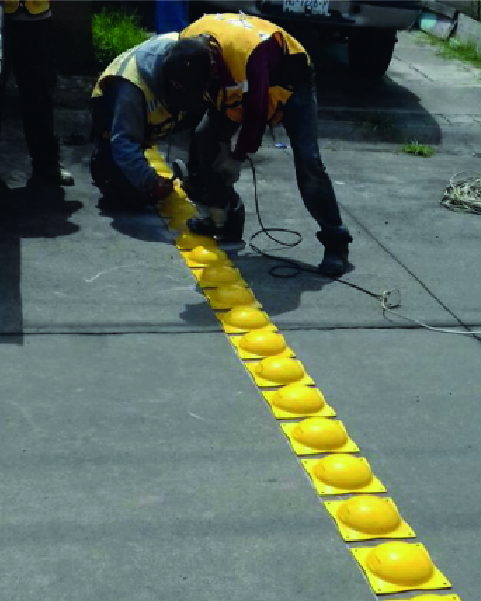 Colocación de vialetas, botones, defensas metálicas y reductores de velocidad certificados.